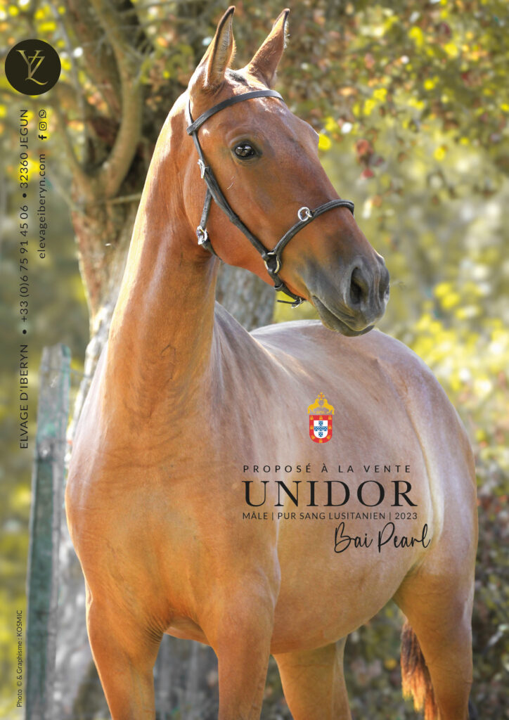 Par TROVADOR SS et NARCEJA DA AJUDA par ESPORAO Pur sang Lusitanien de robe BAI PEARL porteur ND1 (le DUN sera testé) Unidor est un poulain chic, typé et plein d’énergie et de joie de vivre. Des allures amples et rebondies Ce mariage nous ravis